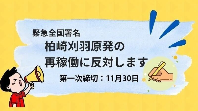 緊急全国署名 柏崎刈羽原発の再稼働に反対します